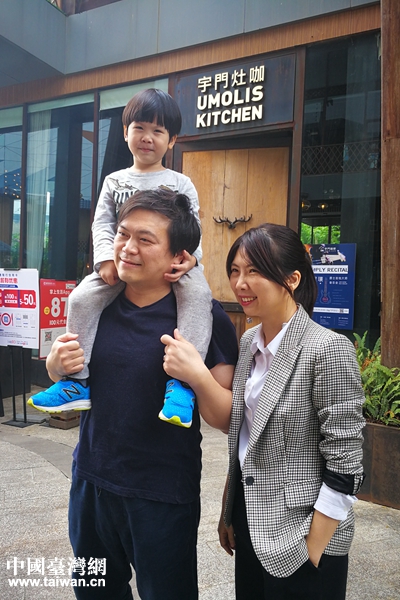 宇門咖啡負責人張元亨攜妻兒出鏡,兒子騎在爸爸的肩膀上嬉戲,一家三口有說有笑,其樂融融,展露出“美滿幸!钡奶鹈坌θ。張元亨說“2010年我從東莞到南寧一家企業任高管,山清水秀、開放包容、快速發展的南寧深深地吸引了我,與太太商量后,我們把家安在了南寧,兩個孩子現在也在南寧上學。2012年,我看好南寧高端主題烘焙咖啡餐吧的發展前景,辭去企業高管后,陸續在南寧開了6家風格定位不同的烘焙咖啡餐吧。我們還與廣西多家媒體和機構合作,聯合兩岸藝術家舉辦了多場音樂會、畫展等文藝活動。希望今后能繼續為推動桂臺文化交流出一份力!