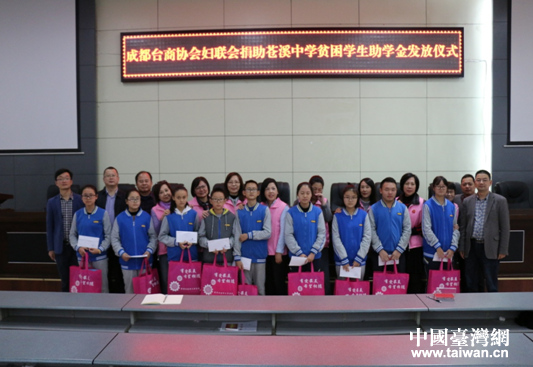 成都臺商協(xié)會婦聯(lián)會赴廣元市捐助貧困學(xué)生。(圖片來源:廣元市臺辦)