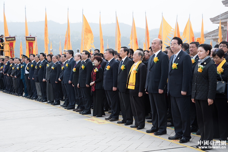 2018年4月5日,戊戌年清明公祭軒轅黃帝典禮在陜西省黃陵縣舉行,中國國民黨前主席洪秀柱、新黨主席郁慕明等200多名臺(tái)灣各界同胞出席公祭典禮。(圖片來源:陜西省臺(tái)辦)