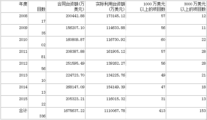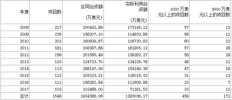 經(jīng)過山東省方方面面的共同努力,山東對臺經(jīng)貿(mào)交流合作邁入融合推進的新階段,魯臺經(jīng)貿(mào)合作不斷深化,規(guī)模持續(xù)擴大、領(lǐng)域不斷拓展、質(zhì)量穩(wěn)步提升,2008年-2017年山東省批準(zhǔn)臺資項目1549個,合同臺資193.4億美元,實際利用臺資129.3億美元,臺資項目質(zhì)量明顯提高,大項目增多,截至2017年底,山東省總投資1000萬美元以上的臺資項目共1057個,其中總投資額在3000萬美元以上項目210個。
