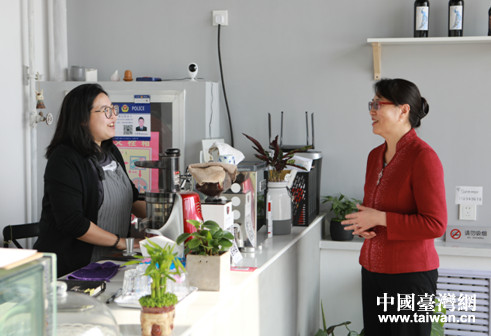 臺胞潘姵蓉和新疆塔城小伙夏斌通過網絡相識相愛,現在組建了自己的小家庭,小兩口在烏魯木齊市經營一家西點甜品店。閻梅主任一行來到他們的小店,詳細詢問了日常經營情況,同時向來疆創業發展的臺灣青年表示贊揚,并介紹了相關政策。鼓勵小兩口在疆發展信心,希望踏實工作,加倍努力,爭取擴大經營。潘姵蓉表示,自己是學習烘焙專業的,手工制作是她的最愛,來烏魯木齊市居住后,就開啟了線上手工蛋糕銷售,客戶還挺多,經常都忙不過來,去年又開了這家西點甜品實體店,認識了很多新疆朋友,大家對她都非常友善,讓她感受到了新疆的熱情,也讓她一個遠嫁到新疆的臺灣女孩非常感動和欣慰。她稱,自己也非常喜歡新疆的氣候和飲食,常常向島內的親朋好友介紹新疆,邀請他們來疆走走看看,了解認知新疆。今后會積極參與臺辦舉辦的各類活動,繼續腳踏實地努力工作,爭取更大發展。