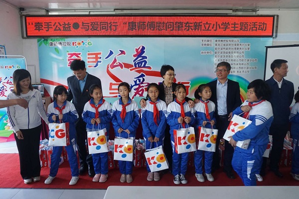 中國臺灣網6月4日訊 5月31日上午,黑龍江省臺辦、哈爾濱市臺辦攜手康師傅控股有限公司走進肇東市新立小學,開展“牽手公益 與愛同行”主題黨日活動,為孩子們送教育、送文化、送知識,讓留守兒童們感受到了親人般的關愛。