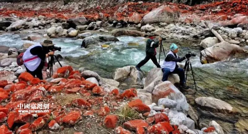 海螺溝紅石灘的傳奇色彩讓兩岸攝影家流連忘返。(圖片來源:四川省臺(tái)辦)