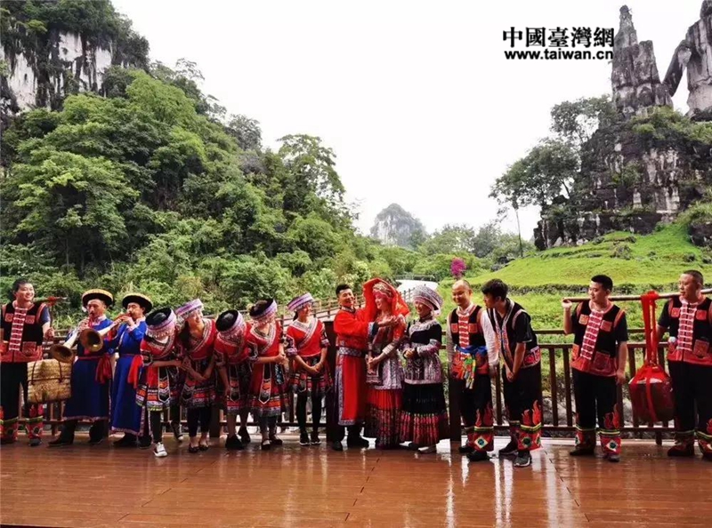 在興文石海夫妻峰,用鏡頭記錄苗家婚俗。(圖片來源:四川省臺(tái)辦)