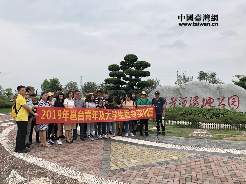 臺灣青年學生地濕地公園合影。(圖片來源:南寧市臺辦)