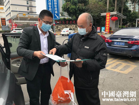 區臺辦為留穗臺商送去口罩。 (中國臺灣網 發)