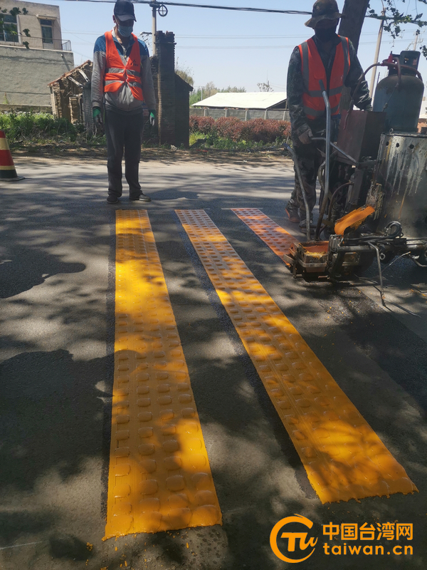 鋪設道路減速帶(圖片來源:遼陽市臺辦)