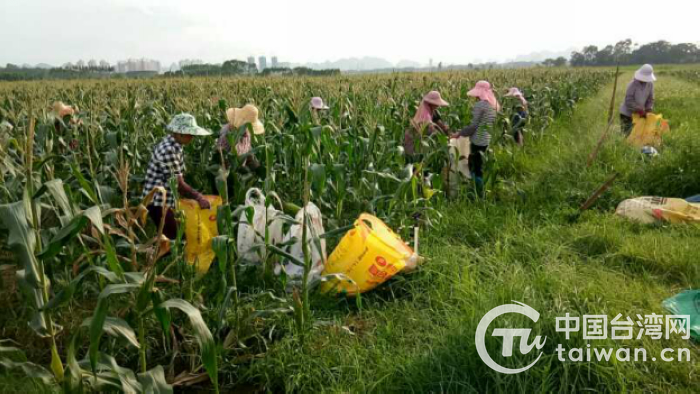 農戶正在玉米地里忙碌(圖片來源:廣西來賓市臺辦)