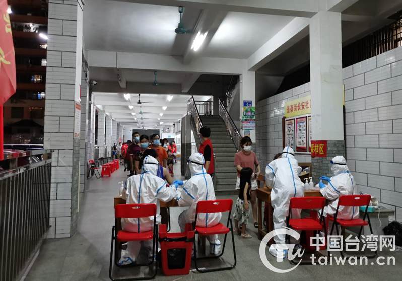 在穗定居臺胞、南方醫科大學皮膚病醫院葉理隨醫院志愿隊支援基層核酸檢測。(圖片來源:廣州市臺灣同胞聯誼會)