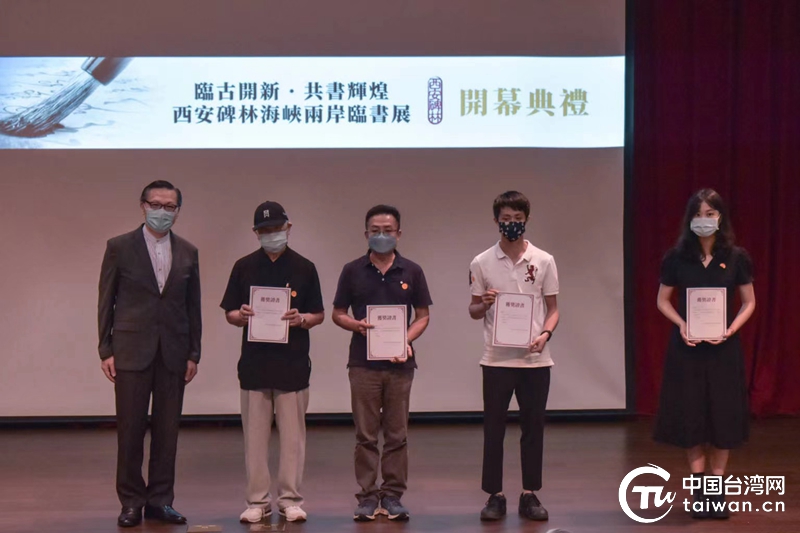 中國臺灣網9月6日訊 9月3日上午,由中國宋慶齡基金會、陜西省文物交流協會、臺灣中華翰維文化推廣協會共同主辦的“臨古開新 共書輝煌——西安碑林海峽兩岸臨書展”在臺灣南投中臺世界博物館開幕。開幕式以北京、西安和南投三地視頻連線的形式舉辦。中國宋慶齡基金會副主席于群、陜西省文物交流協會名譽會長羅文利、臺灣中華翰維文化推廣協會理事長陳春霖等兩岸嘉賓120余人出席。