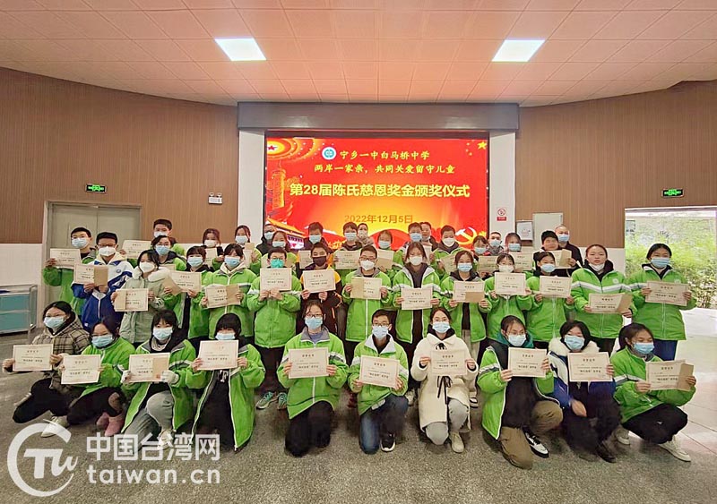 中國臺灣網12月12日訊 第28屆陳氏慈恩獎助學金頒發儀式近日在湖南省寧鄉一中白馬橋中學圓心報告廳隆重舉行!瓣愂洗榷鳘剬W金”是由湘籍臺胞陳智華先生代表其家人設立,獎金來自其父陳邦榮先生在臺灣為獎勵湘籍學生而設立的“陳氏慈恩獎學基金會”,用于獎勵白馬橋中學的優秀學生,幫扶家庭困難的優秀學生。