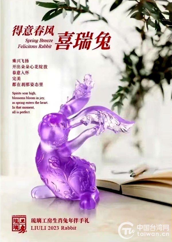 中國臺灣網3月15日訊 “2022上海伴手禮好評榜”近日出爐,臺資企業上海琉璃工房琉璃藝術品有限公司的“春風得意喜瑞兔”喜獲入選。