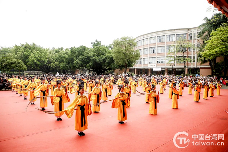“巍巍中華,炎黃子孫,血脈至親,道統(tǒng)相承……”4月14日上午,東莞臺商子弟學校一派莊嚴喜慶,鏗鏘古樸的弦樂在校園合奏共鳴,學校為319名高二學生舉行成年禮,來自海峽兩岸200多位嘉賓及400多位臺商、家長參加活動。與會嘉賓與師生、家長共同祭拜中華民族始祖炎帝神農(nóng)氏,319位臺生身著儒生長袍進行“三加禮”(跪拜父母、接受師長祝福與嘉賓授冠),遵照中華傳統(tǒng)禮儀祭拜禮告中華民族始祖炎帝神農(nóng)氏,宣誓成年。