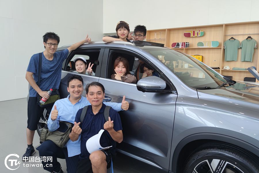 臺灣青年們于新能源汽車中心體驗電動汽車。(中國臺灣網 高嘉鴻 攝)