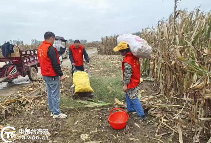 駐馬店市涉臺系統工作人員深入秋收一線幫助臺胞收玉米。(中國臺灣網發)