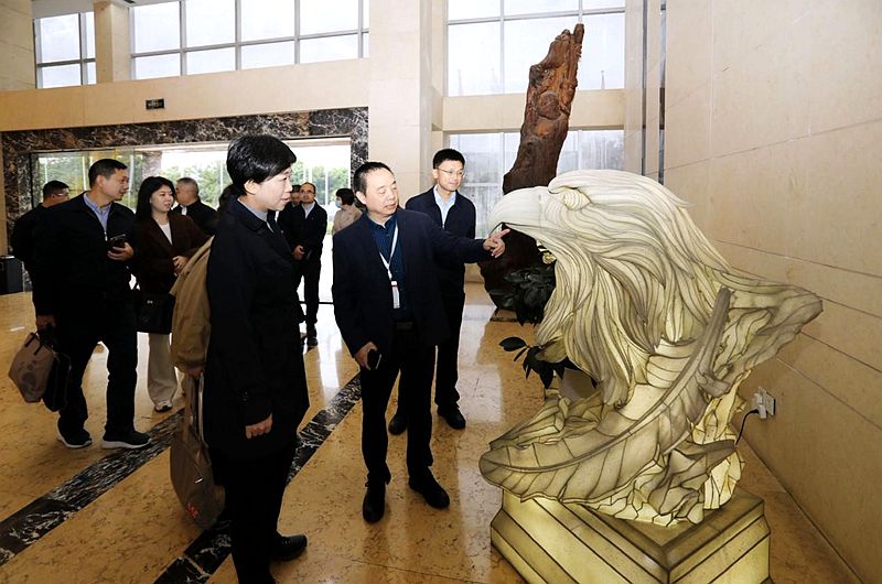 劉曉晨一行調研自貢彩燈企業。(中國臺灣網發)