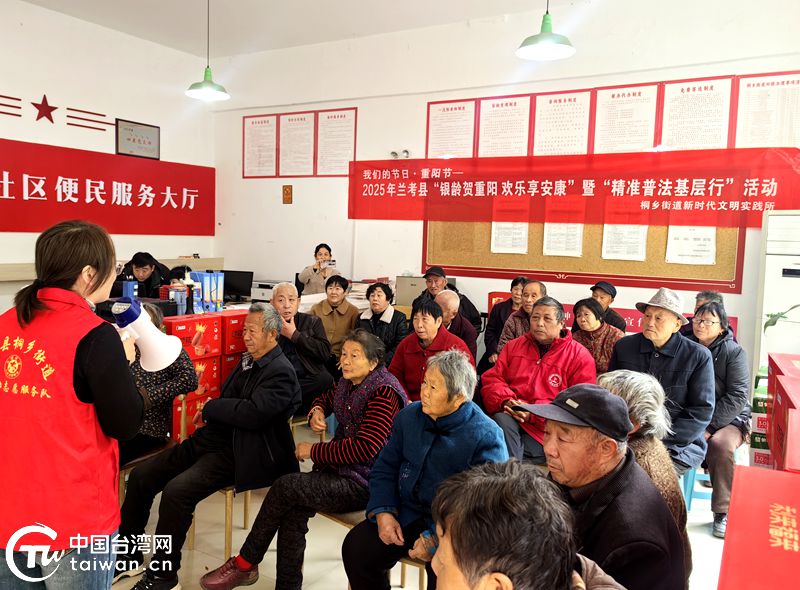 中國臺灣網(wǎng)10月20日訊 流年不棄桑榆老,秋光冉冉映重陽。為大力弘揚孝親敬老傳統(tǒng)美德,在重陽佳節(jié)到來之際,開封市蘭考縣委統(tǒng)戰(zhàn)部聯(lián)合桐鄉(xiāng)街道在人民社區(qū)開展“銀鈴賀重陽 歡樂享安康”暨“精準(zhǔn)普法基層行”活動,邀請轄區(qū)內(nèi)臺胞臺屬及60歲以上老人共聚一堂,歡度重陽佳節(jié),為老人們送上了“暖心一樂”的專屬節(jié)日祝福和“接地氣”的“普法套餐”。