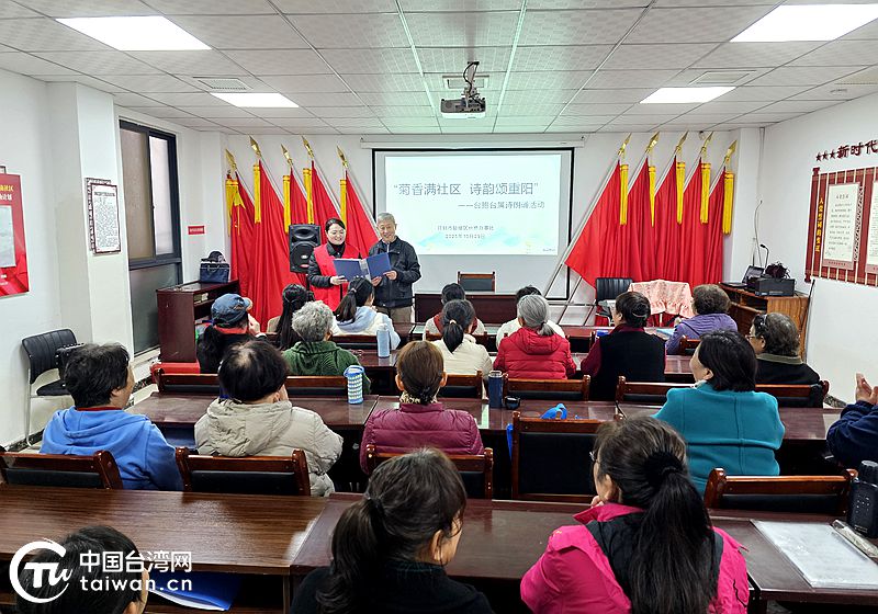 活動現(xiàn)場,來自社區(qū)的文藝骨干、老年大學(xué)學(xué)員以及臺胞臺屬代表輪番登場,傾情演繹。《九月九日憶山東兄弟》中“獨在異鄉(xiāng)為異客,每逢佳節(jié)倍思親”的共情詩句,《采桑子·重陽》里“戰(zhàn)地黃花分外香”的豪邁意境,在雙方飽含深情的誦讀中被生動詮釋。《重陽抒懷》《敬老歌》《鄉(xiāng)愁》等一首首膾炙人口的經(jīng)典詩詞和現(xiàn)代篇章,也在大家聲情并茂的演繹下,或激昂澎湃,或深沉婉轉(zhuǎn),充分展現(xiàn)了中華詩詞的永恒魅力,更表達(dá)了對老人的深深祝福、對家鄉(xiāng)的深切思念以及對美好生活的熱愛與向往。特別是幾位臺胞臺屬的朗誦,情深意切,引起了在場觀眾的強烈共鳴,現(xiàn)場不時爆發(fā)出陣陣熱烈的掌聲。誦讀間隙,臺胞臺屬與轄區(qū)居民還圍繞詩詞背后的節(jié)日習(xí)俗展開交流,雙方你一言我一語,在文化交流中加深了對彼此生活的了解,也讓“兩岸同根、文化同源”的認(rèn)知更加深刻。