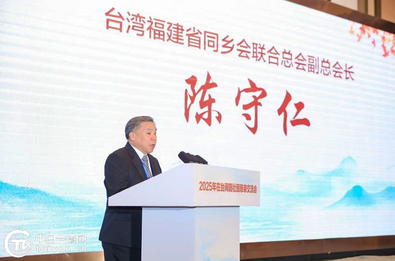 臺灣福建省同鄉會聯合總會副總會長陳守仁致辭。(中國臺灣網發)