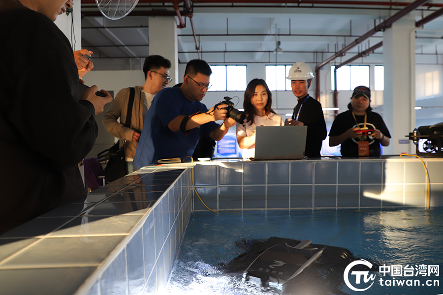 臺灣記者嘗試操控水下機器人。(中國臺灣網發)