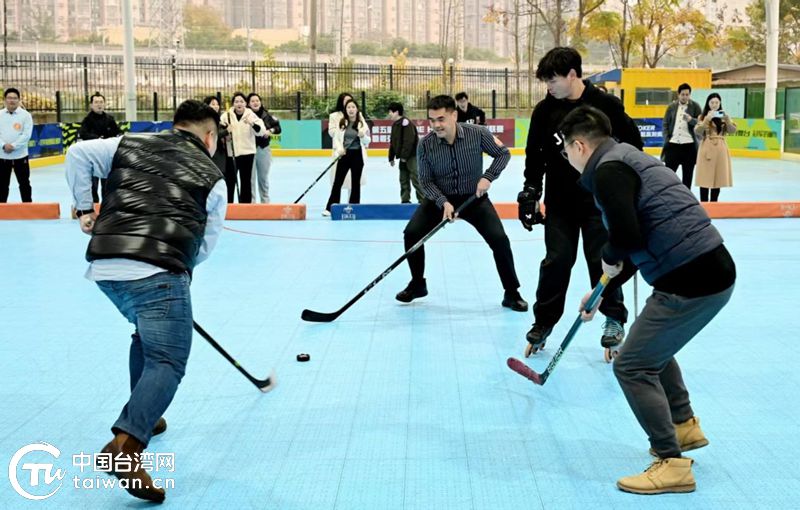 臺青體驗輪滑冰球運(yùn)動。(中國臺灣網(wǎng)發(fā))