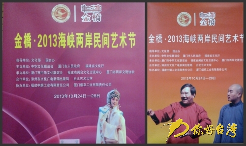 你好臺灣網廈門10月23日消息 (記者 劉楊濤)一年一度的兩岸民間藝術節明日即將熱鬧開鑼。10月24日至28日,由文化部和國臺辦擔任指導單位,中華文化聯誼會、廈門市人民政府和福建省文化廳共同主辦的“金橋·2013海峽兩岸民間藝術節”將在廈門隆重開幕,兩岸藝術表演團隊及專家學者約800人將同臺展示,相互切磋,齊心攜手共同弘揚和推廣兩岸優秀民間傳統藝術。