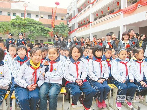 福建泉州石獅市靈秀鎮(zhèn)華山村的華山小學23日進行新校舍揭牌儀式。(圖自臺灣《旺報》)