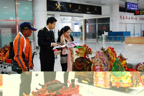 據(jù)了解,3月7日至8日,由金門縣政府組織的1200余名臺灣信眾分別通過廈金航線、泉金航線入境,前往漳州、泉州等地寺廟進香,并在當?shù)嘏e行一系列的踩街、祭典儀式。由于儀式需要,該批臺灣進香團入境時攜帶神轎28頂,神將46尊,神器124件。