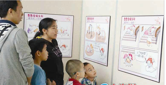 據悉,臺灣憨憨家族,乃來自臺灣公益性機構“憨憨家族親子教育協會”主打人物形象,該協會立志于用卡通形象,傳承中華民族傳統文化,促進兩岸親子教育交流,旨在創造一個健康、和諧的家庭教育環境,為孩子的成長構筑一個良善空間。而住在杰米城堡中的憨憨家族,以“萌態”十二生肖為主角。憨憨家族每天都有與童趣幽默、健康成長有關的小故事。而此次在圖書館展出的大部分動漫作品,乃憨憨家族富有童心的族長們,認真記錄孩子們的生活點滴而來。