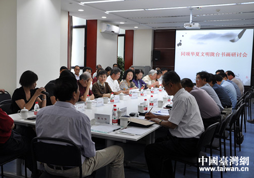 中國臺灣網8月15日蘭州消息 日前,“隴臺書畫研討會”在蘭州大學舉行。來自臺灣、北京、甘肅的書畫家50余人,圍繞“同頌華夏文明”這一主題進行研討交流。研討會由甘肅省書法家協會副主席、蘭州大學書法研究所所長李恒濱主持。甘肅省人大常委會原副主任姚文倉、程有清,甘肅省臺辦副主任孫志中,蘭州文化聯誼會會長黨成德等出席了研討會。