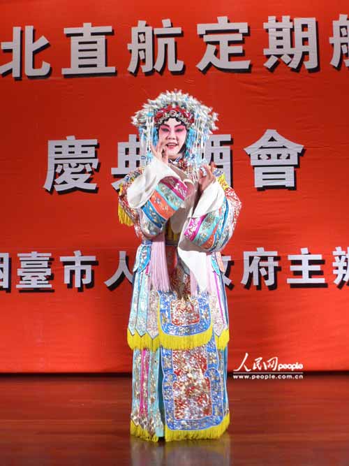 圖為在慶典儀式上,煙臺京劇院的董翠娜表演京劇《狀元媒》中的片段。董翠娜系張君秋的弟子、張派傳人,中國戲劇梅花獎得主 聶傳清攝