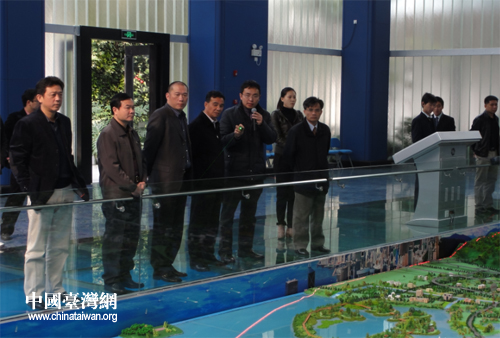 陳國興在翠亨新區(qū)規(guī)劃館參觀,聽取規(guī)劃建設(shè)介紹。(圖片來源:中山市臺辦)