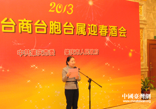 中國臺灣網1月25日肇慶消息 1月22日晚上,廣東肇慶市委、市政府舉辦肇慶臺商臺胞臺屬迎春酒會,黨政領導和臺商臺胞臺屬代表共聚一堂,總結過去,展望未來,共謀發展,同賀新春。