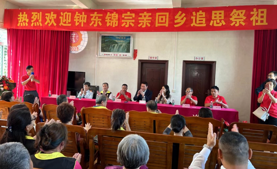 歡迎會上,臺灣東錦宗親贈送臺灣區(qū)鍾姓宗親總會恭印的《鐘姓大宗譜》給龜形宗親,龜形永志會長贈送《蕉嶺鐘姓史話》志書給東錦宗親,加深了解兩岸宗族宗親更進一步加深兩岸同根同脈宗族脈系的聯(lián)誼情。歡迎會上永志會長接受臺灣鍾姓宗親祭祖團敬贈的“祥光福地,恩澤千秋”的錦旗,接著徐溪龜形永志會長回贈東錦宗親寫有:“情系桑梓彰厚愛,祖德不忘顯真情”的錦旗。