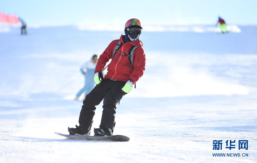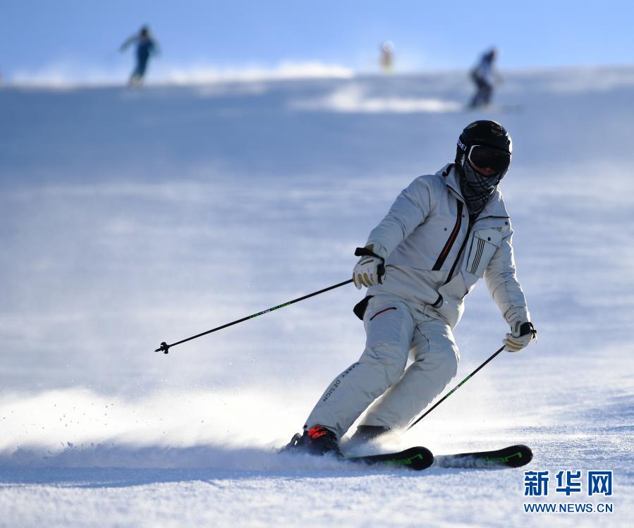 1月4日,滑雪愛好者新疆阿勒泰市將軍山滑雪場滑雪。新華社記者 沙達提 攝