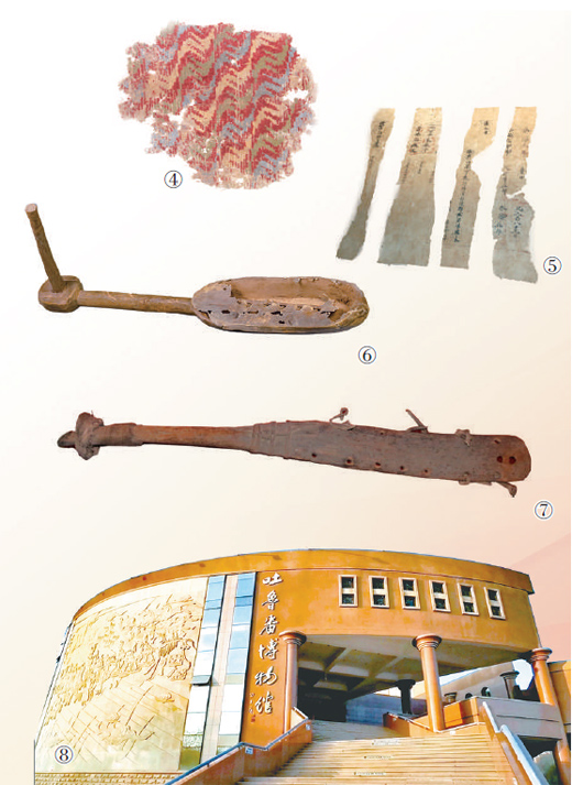 吐魯番博物館始創(chuàng)于1956年,2009年9月,新館(圖⑧,資料圖片)建成并免費對公眾開放。新館占地面積30畝,陳列面積4278平方米,現(xiàn)有藏品20637件(套),其中,珍貴文物892件(套),一級文物149件。藏品分為35種,包括石、陶、木、銅、鐵、金、銀器、錢幣、毛麻絲織品、皮質(zhì)品、木雕、泥俑、繪畫、考古人類學標本、動植物化石標本、糧食、干果及各類食品等。現(xiàn)設吐魯番通史展、吐魯番出土文書展、吐魯番巨犀化石展、吐魯番出土錢幣展等常設展覽。