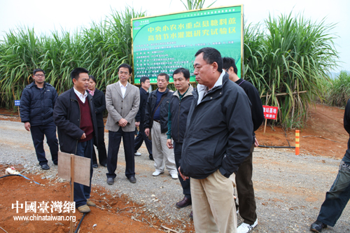 參訪團(tuán)考察江州區(qū)甘蔗高效節(jié)水灌溉項(xiàng)目建設(shè)示范基地。(圖片來(lái)源:崇左市臺(tái)辦)