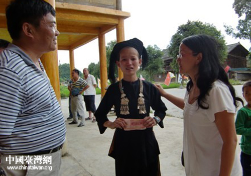 中國臺灣網(wǎng)7月20日黔南消息 日前,受臺灣學(xué)子廖國隆的委托,貴州省臺聯(lián)會長邱培聲、副巡視員周飛月,去到三都水族自治縣水各村看望水族姑娘初一學(xué)生吳大猜,發(fā)給助學(xué)金300元人民幣,鼓勵吳大猜好好讀書,不要辜負廖國隆的期望。