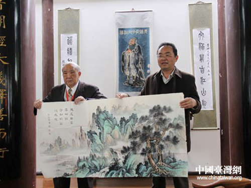 中國臺灣網11月7日貴陽消息 日前,參加“筑臺兩地書畫藝術交流展”的部分臺灣藝術家來到貴州大學中國文化書院,向學校捐贈精心創作的書畫作品。
