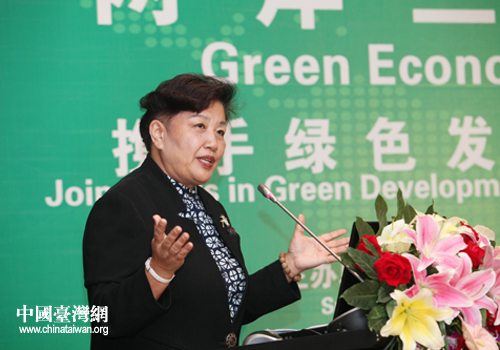 中國民族貿易促進會執行會長劉延寧女士作題為《現代正義觀與綠色中國》的主題演講。(貴陽市臺辦 胡珊珊 攝)