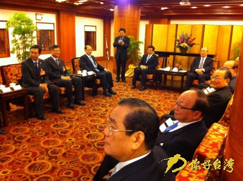 陳德銘在致辭時介紹了海協會經貿交流團在臺參訪的情況和收獲。他說,七天來,我們走訪了臺北、桃園、高雄、屏東、嘉義、臺中、新竹、新北等地,實地考察了臺灣“六海一空自由經濟示范區”規劃與建設,參觀了一批有特色的臺灣企業,看望老朋友,結識新朋友。一路行來,對臺灣鄉親希望深化兩岸經濟合作、實現互利雙贏的愿望印象深刻,對兩岸經濟合作發展的前景充滿信心。此訪有利于為推動兩岸經濟深度合作創造積極氣氛,也期待吳伯雄榮譽主席繼續為推動兩岸關系和平發展貢獻心力。