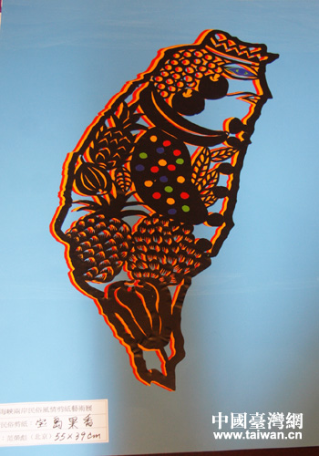 臺(tái)灣民俗風(fēng)情剪紙作品《寶島果香》。(中國(guó)臺(tái)灣網(wǎng) 郭慶娜 攝)