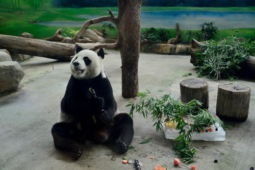 贈臺大熊貓“夫妻”慶生 蛋糕別致吃相迥異