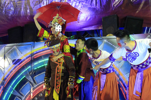 高雄市民吳金對上臺參與了《峨眉俠客》表演,蒙著眼體驗了一把“小李飛刀”。他說,他其實一點都不緊張,因為絕對相信這些“俠客”們的功夫,體驗了下來更加覺得,今晚的表演真的很贊!臺灣市民張榮源則當(dāng)了一次“彝族新郎”,參與到表現(xiàn)彝族婚嫁風(fēng)俗的舞蹈表演《喜背新娘》中。穿上彝族服飾,張榮源在臺上表演得有模有樣。他說,他從來沒去過四川,也是第一次看到這樣的表演,所以看到可以參與進去,就立馬舉手要參加。通過今天的表演對四川產(chǎn)生了很大的興趣,希望有機會可以去到四川親眼看看。