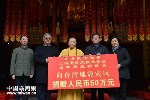 捐贈(zèng)儀式上,上海玉佛禪寺、上海覺群文教基金會(huì)、覺群慈愛功德會(huì)向臺(tái)灣地震災(zāi)區(qū)捐贈(zèng)50萬元。玉佛禪寺全體僧職人員及護(hù)法居士、覺群志工代表也紛紛伸出援手。