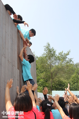中國臺灣網7月7日北京訊。ㄓ浾 李杰)7月6日,參加第十七屆京臺青年交流周的兩岸青年大學生120人,來到了位于北京密云的北京國際青年訓練營,進行了拓展訓練,兩岸青年學生通過共同努力完成訓練項目,增進了交流和了解,并激發出創新意識和集體觀念。