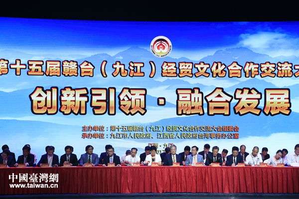 中國臺灣網8月30日九江訊(記者 雍紫薇) 今天上午,第十五屆贛臺(九江)經貿文化合作交流大會(簡稱贛臺會)在江西九江開幕。中共中央臺辦、國務院臺辦主任張志軍,江西省省長劉奇,臺灣三三企業交流會會長江丙坤,全國臺企聯會長王屏生等出席了大會,本屆“贛臺會”參會人數約800人左右,其中臺灣嘉賓約500人。現場共簽約79個臺資入贛項目,簽約合同金額達40.6億美元。