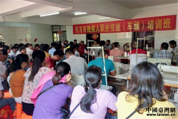 東方市殘疾人職業技能(車縫)培訓班開班暨東方市鴻盛殘疾人服務有限公司開業。(圖片來源:海南省臺聯)