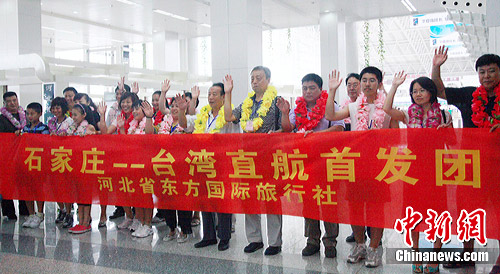 圖:河北至臺(tái)灣直航 首發(fā)團(tuán)友合影留念