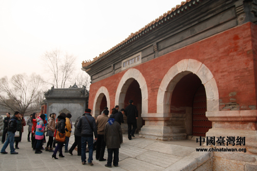 網媒記者們步入涿州三義宮。(中國臺灣網 焦源源 攝)